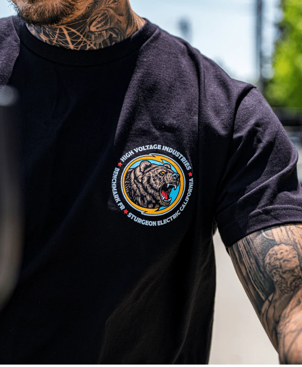 Three California companies. One hard hitting collab. High Voltage Industries, Benchmark FR, and Sturgeon Electric California linked up on this limited edition collab design for the 2025 Lineman's Rodeo Season. Keep an eye out for the Sturgeon crew wearing these all season long.