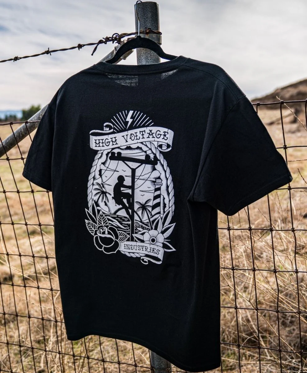 Another day trying to keep Paradise in stock. Now Made in the USA. Designed by local American Traditional tattoo artist Jacob Doney, Paradise is one of our bestsellers for a reason. Now it's on a premium Bayside tee, 100% ringspun cotton, Made in the USA. Soft feel, better quality, same athletic fit you're used to.